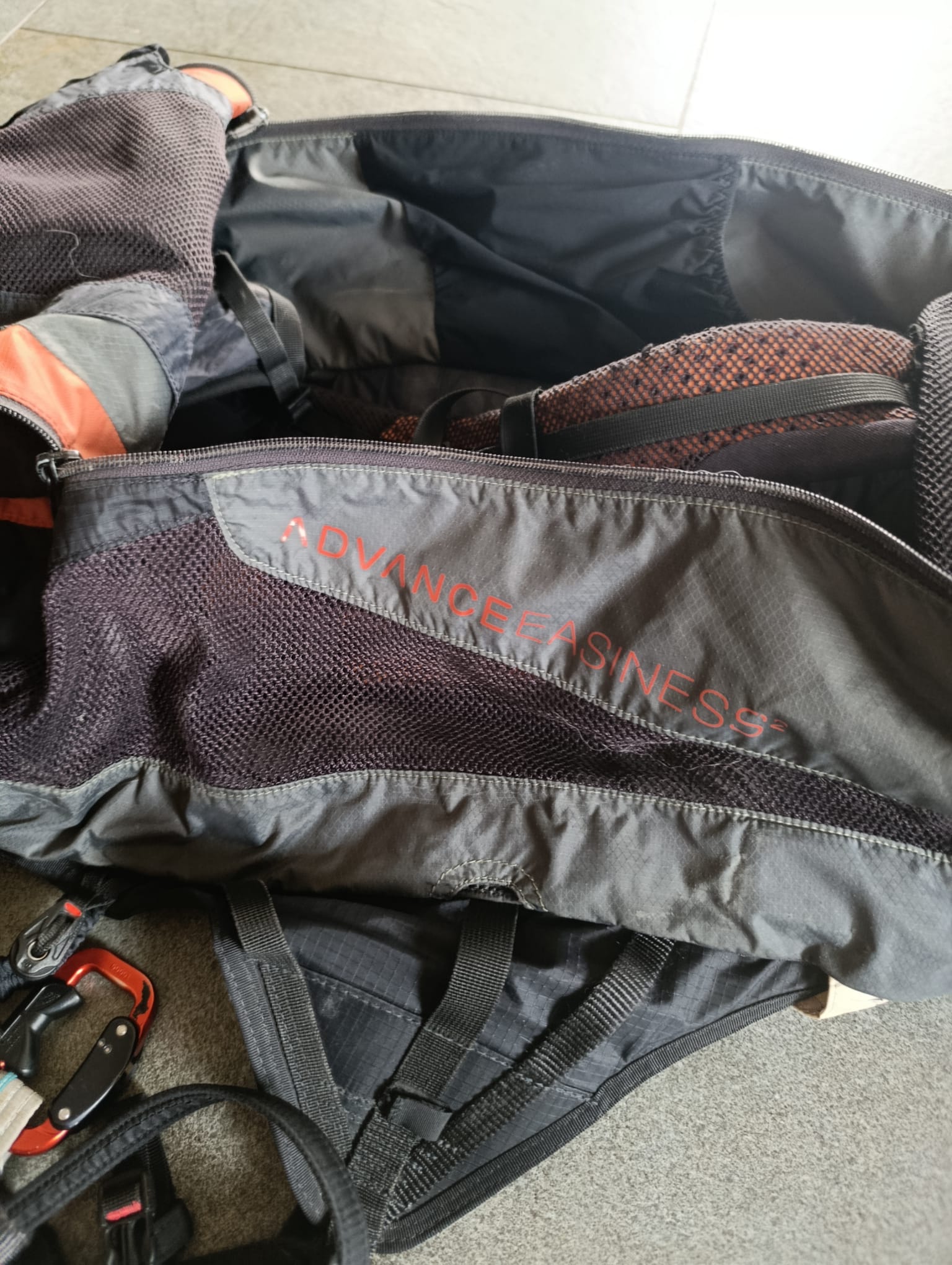Advance Easiness 2 – No airbag and the reserve mounts are broken. Could be a good hike and fly harness after check. Only usuabe with front mounted