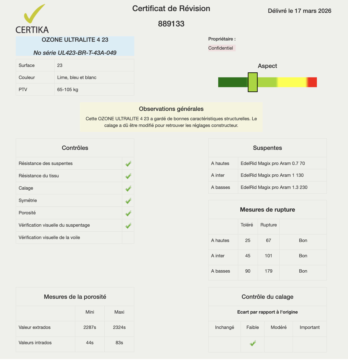 kit ultralite 4 23m2 + neo string 2 taille M, bon etat, achetée neuve en 2019 controlée & recalée mars 2026 chez Certika, grosse 100aine de vol / 32h en l’air, – visible autour d’Annecy EN-A – PTV65-105 1500€ le kit faire offre – (ou échange possible avec une aile H&F + petite)