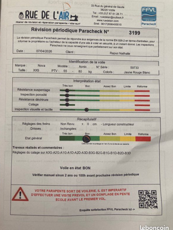 Contrôle effectué le 07/04/26, secours plié : prêt à voler!!!