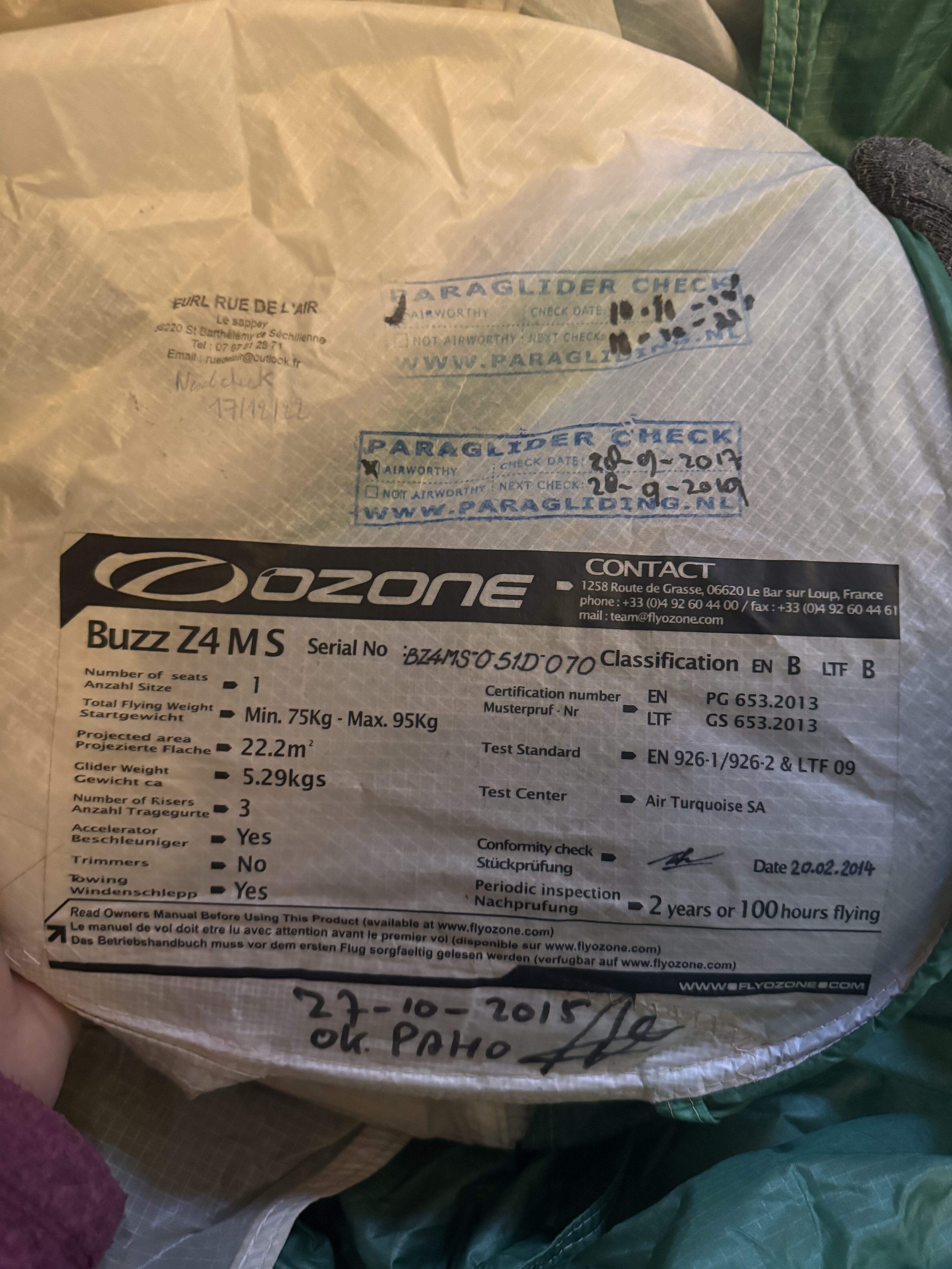 Je vends mon matériel de parapente, soit en lot, soit séparément.