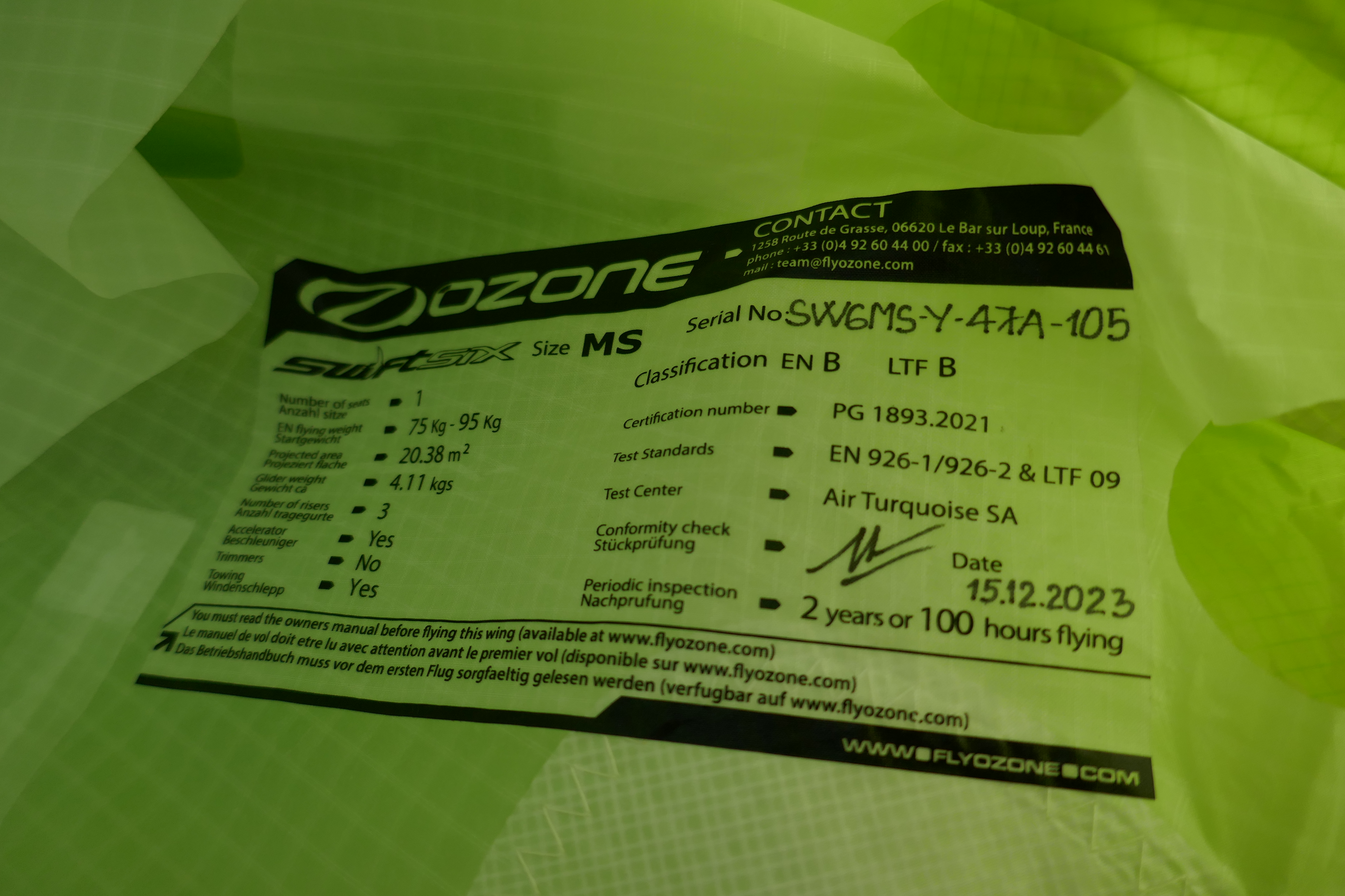 Vend Ozone Swift 6 MS seconde main. 50h du premier propriétaire, 1h de pente école du second. Plusieurs accrocs de buisson < 1cm du premier propriétaire, réparés par l’atelier Au fil des cimes.