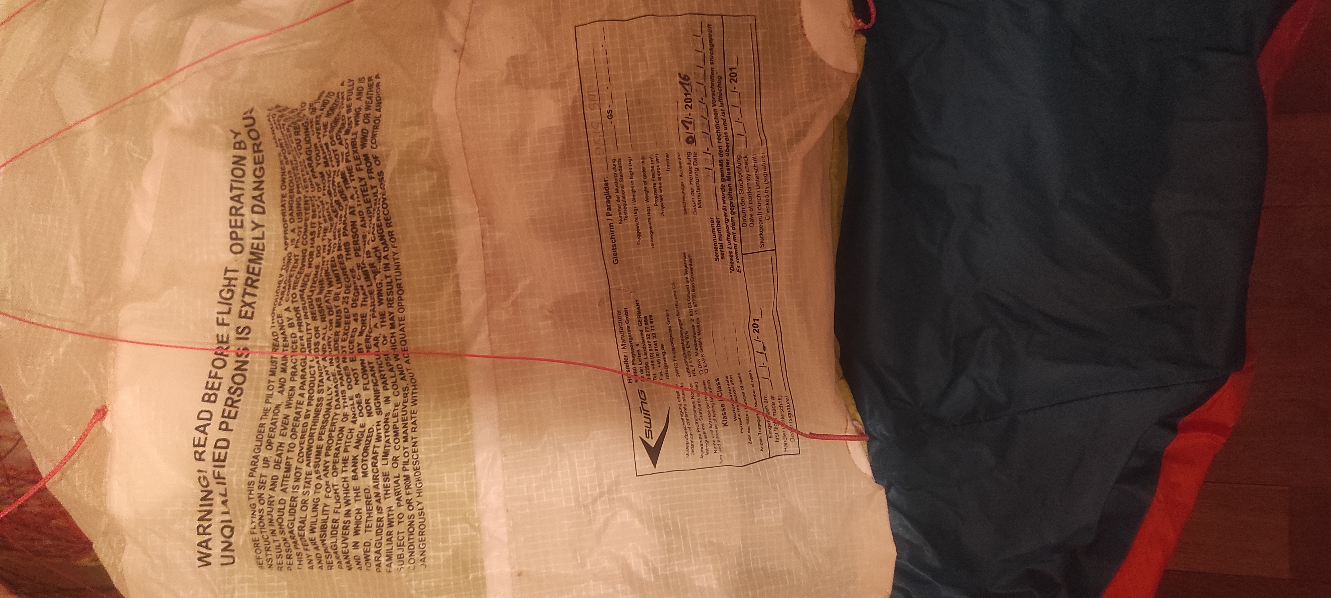 Cause changement de PTV, je vends mon aile de parapente.