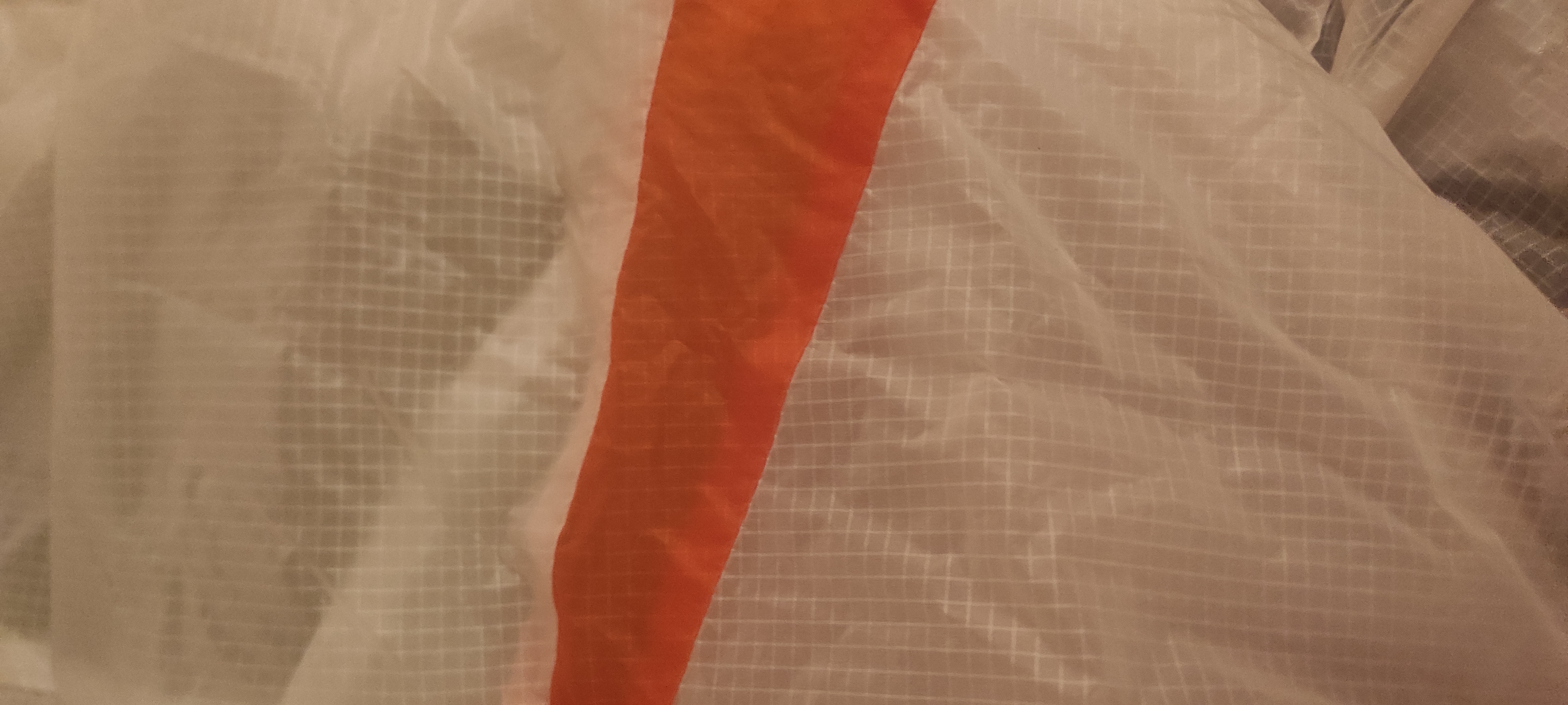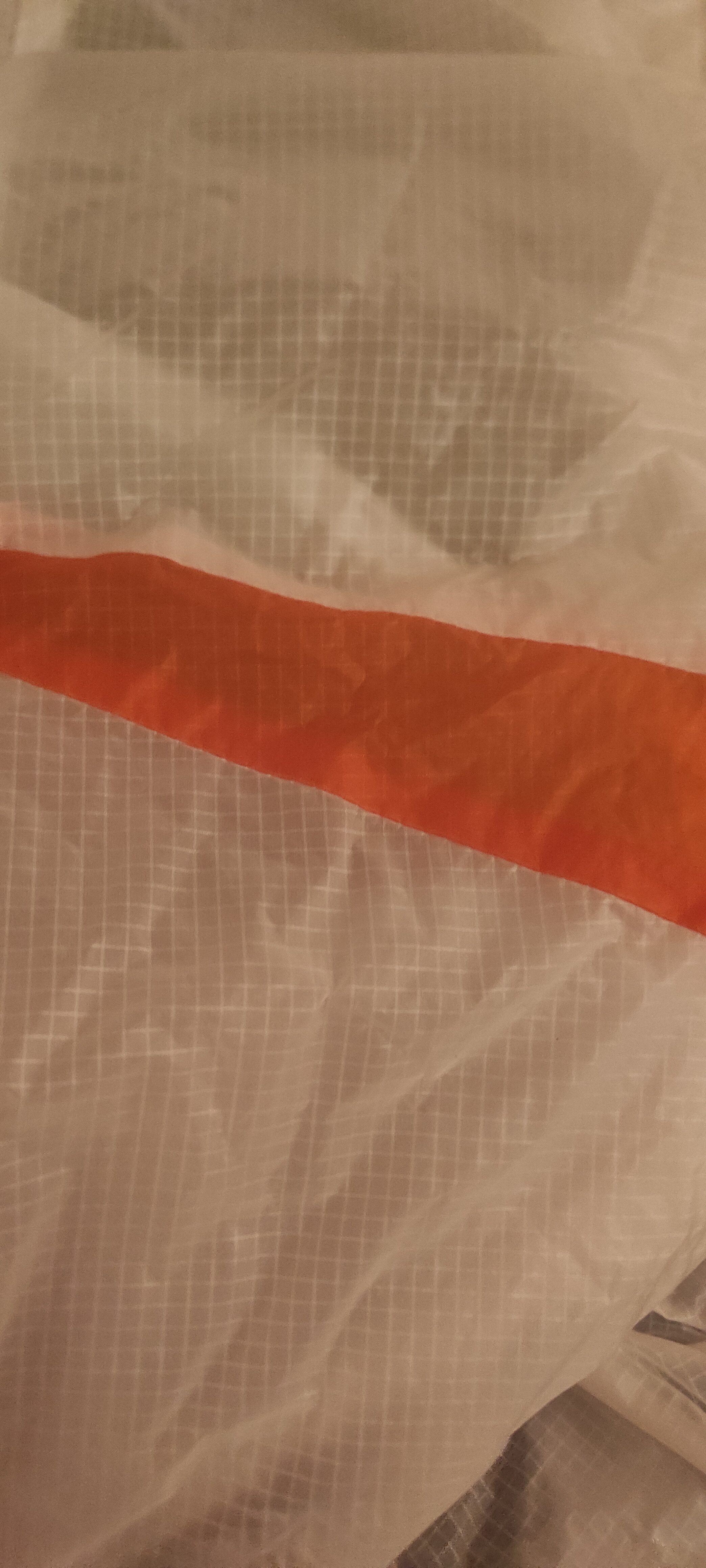 Tissus encore craquant et couleurs toujours vives. Toujours stockée dans une pièce tempérée à l’abris des UV et de l’humidité. Jamais de SIV ni de sable. Pas de bord de mer et peu de gonflage.
